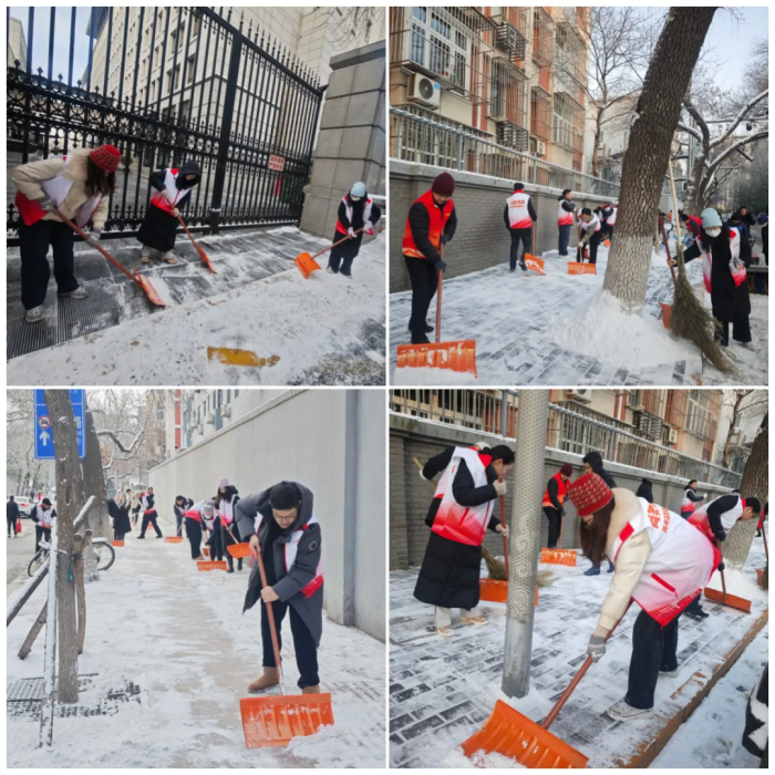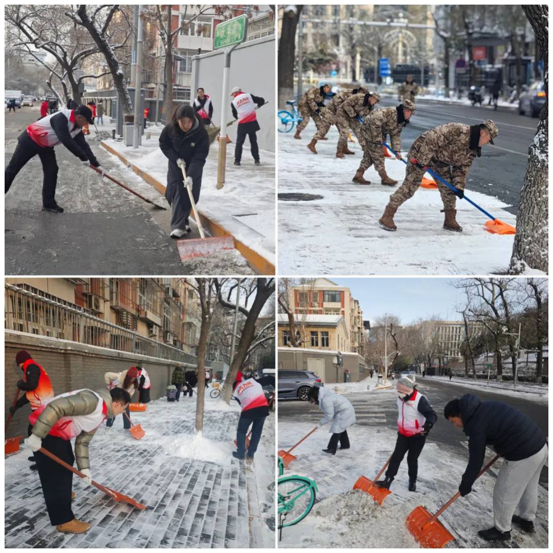 清晨的街道,白雪皑皑,大家早早地在东华门街道指定区域集合,对大华路北口到东单公园西门南北向两侧便道的积雪和暗冰进行集中清理。寒风凛冽,却吹不散志愿者的热情,大家干劲十足,挥锹铲雪、破冰清路,配合默契。铁锹与地面的摩擦声此起彼伏,红马甲的身影在白雪的映衬下格外醒目。大家在认真清理积雪的同时,还贴心提醒过往行人注意安全。